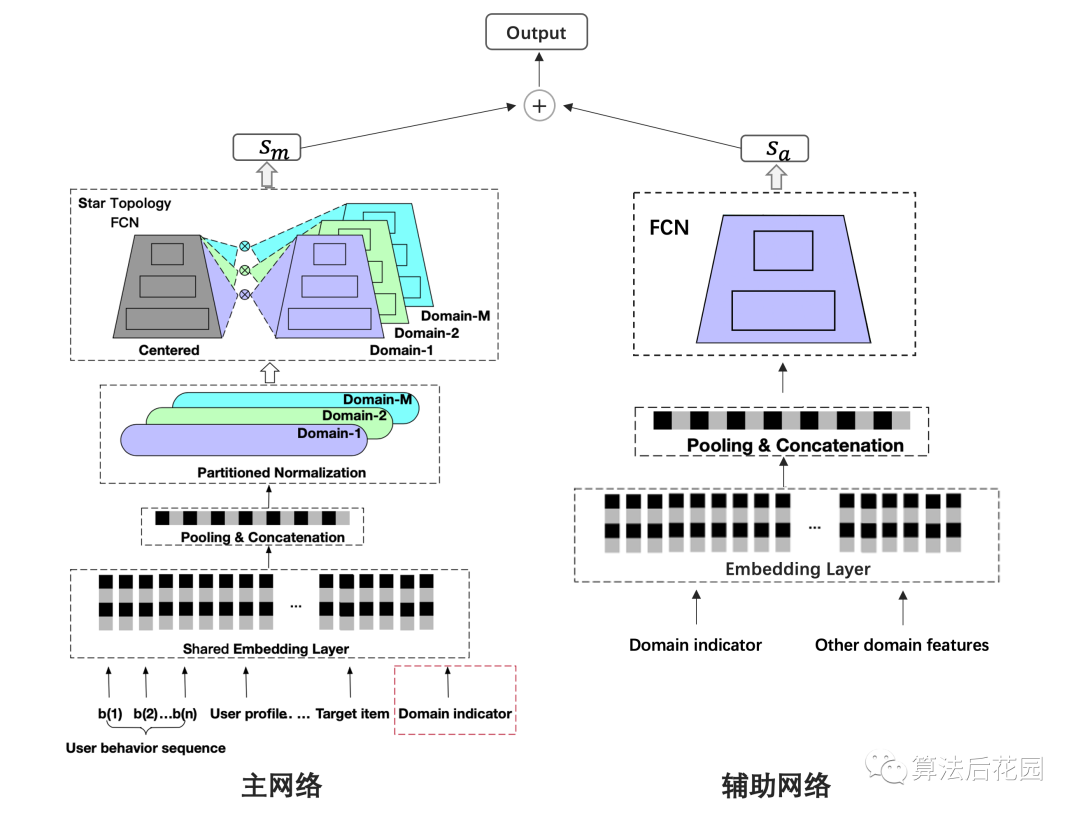 多场景建模是推荐系统CTR预估领域比较热门的一个研究方向,本次给大家分享的论文是: 《One Model to Serve All: Star Topology Adaptive Recommender for Multi-Domain CTR Prediction》 这篇论文来自阿里妈妈定向广告技术团队,文章发表在CIKM,从推荐系统多场景建模的难点出发,提出了STAR模型,并在阿里妈妈千亿营收的广告系统上部署全量上线。 本质上,STAR提供的是一种“混合多分布下的差异化精准建模方案” ,也就是说,STAR不仅提供了一种多场景建模方案,如若你没有多场景建模的需求,但是你想对混合多分布的数据进行更精细化的建模,例如,分人群进行精细化建模,那么这篇论文可以帮你打开思路。此外,STAR的亮点之一是其应用的PN(Partitioned Normalization),PN是STAR对于多场景建模问题基于BN(Batch Normalization)做的优化,本文也会带大家复习一下BN的常规面试考点。 1 背景首先,我们需要理清楚一系列背景问题:(1)什么是多场景?(2)为什么需要多场景建模?(3)初看多场景建模总感觉跟多任务建模很像,但他们真的不一样,区别到底是什么?(4)多场景建模的难点是什么?传统方法有什么缺点?这些问题,下文会逐一解释。 我们常用的app中,很多都有多场景。比如你要买一件衣服,打开淘宝,接下来的操作流程可能是: 首页推荐Feed(“猜你喜欢”推荐场景)→宝贝详情页浏览,详情页下方推荐Feed(“看了又看”推荐场景,这里推荐的是该宝贝所属店铺的商品)→加入购物车,购物车页下方推荐Feed(“你可能还喜欢”推荐场景)→支付,支付页下方推荐Feed(购后推荐场景)。 上述,每个推荐页面都对应了一个场景(Domain),这里“场景”指的就是业务场景,淘宝中还有很多大大小小的推荐场景。上述的每个推荐场景都会解决一个问题,即CTR预估。 多场景建模指的是多场景联合建模,多场景建模是从效果和效率两方面来考虑的。 从效果上来看,一方面,不同的业务场景其用户和item有交集,因此各业务场景存在共性,不同场景的信息共享有助于场景间的知识迁移,对于模型的学习是有益的。另一方面,单个业务场景的数据量往往有限,尤其是小业务场景,单独建模会增加模型的训练难度。 从效率上来看,各场景单独建模会造成大量的资源消耗,且需要更多的人力成本。当业务场景的数量达到上百个的时候,这将造成过度的负担。 STAR提供了一种可以同时处理多个业务场景,且兼顾效率和效果的方案。 多场景学习是为不同的业务场景做预估,但解决的是同一个预估任务,例如STAR解决的是CTR预估任务,该任务是跨不同业务场景的。由于不同业务场景解决的是同一个任务,他们的label空间是一致的。不同业务场景的数据分布是不同的,即不同业务场景的用户行为不同,导致各场景的真实CTR是不同的。 多任务学习一般解决的是同一个业务场景的多个任务,多个任务的label空间可能不同,例如CTR和CVR联合预估。由于任务的异构性,现有的多任务学习方法侧重于在底层共享信息,在输出层保持每一个任务对应一个输出。 举例来说,在短视频推荐领域,多任务学习问题可以是为单个视频推荐场景同时预估CTR和观看时长,多场景CTR预估问题是为多个视频推荐场景来做CTR预估。 不同的业务场景其用户和item有交集,因此各业务场景存在共性。但不同的业务场景都有自己特有的用户群体和item,各场景的用户行为也是不同的,即使同一个用户在不同的业务场景中可能有不同的行为,这些差异会带来不同业务场景中数据分布的差异,从而导致各场景的真实CTR是不同的。 我们可以训练一个模型为所有业务场景进行serving,但是这很难捕捉到不同场景的差异性,很难做到同时对所有场景都预估精确。但若每个业务场景各训练一个模型,就没有充分使用其它场景的数据,没有学习到场景之间的共性。 对于多场景之间的共性和差异性,如何有效建模?这就是多场景建模的难点。 STAR从多场景建模的难点出发,既可 捕 捉到不同场景的共性, 也可捕捉到不同场景的差异,既可实现场景间的知识迁移,又可实现各场景差异化的精确预估。 2 问题定义STAR解决的是多场景CTR预估问题,我们将多场景CTR预估问题定义为:推荐系统需同时为 个业务场景 提供CTR预估。模型的输入为 ,其中 是多个业务场景的通用特征,例如用户历史行为特征、用户画像特征、item特征、上下文特征。点击label用 表示, 是场景标识,表明了样本是来自于哪个场景。这里, 服从场景 所特有的分布 ,不同业务场景的分布是不同的。多场景CTR预估旨在构建一个兼顾效率和效果的模型,从而以较小的资源消耗成本为每个业务场景提供准确的CTR预估。 注意,多场景建模的特征分为两类,一类是各业务场景的通用特征,一类是各业务场景独有的特征,这两类特种都非常重要。上文只提到了第一类特征,即 是多个业务场景的通用特征,在STAR中,各业务场景的独有特征会与场景标识一起输入到辅助网络中,下文会详细介绍。 3 方法针对多场景CTR预估问题,STAR既可以学习到不同业务场景之间的共性,也可以学习到其差异性,从而做到对不同的业务场景进行差异化精准预估。STAR包括主网络和辅助网络,总体结构图如下。 说明:论文中只给出了主网络结构图,辅助网络结构图是我根据论文原理自己补充画的,如有错误,欢迎指正。 下面从3.1到3.5分别介绍STAR主网络结构、主网络中的PN原理、主网络中的星型拓扑全连接网络(star topolog