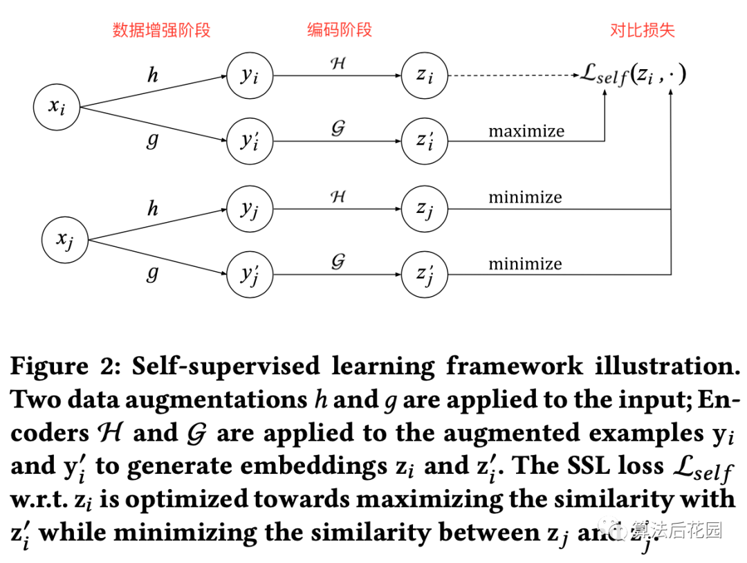 下面先通过2.1介绍辅助任务的SSL框架(即自监督学习框架),再通过2.2介绍SSL框架中提到的数据增强方法,最后通过2.3来交代主任务和辅助任务的联合训练。