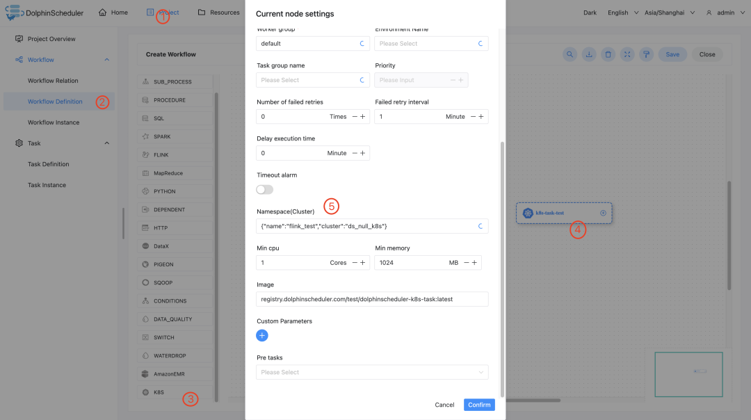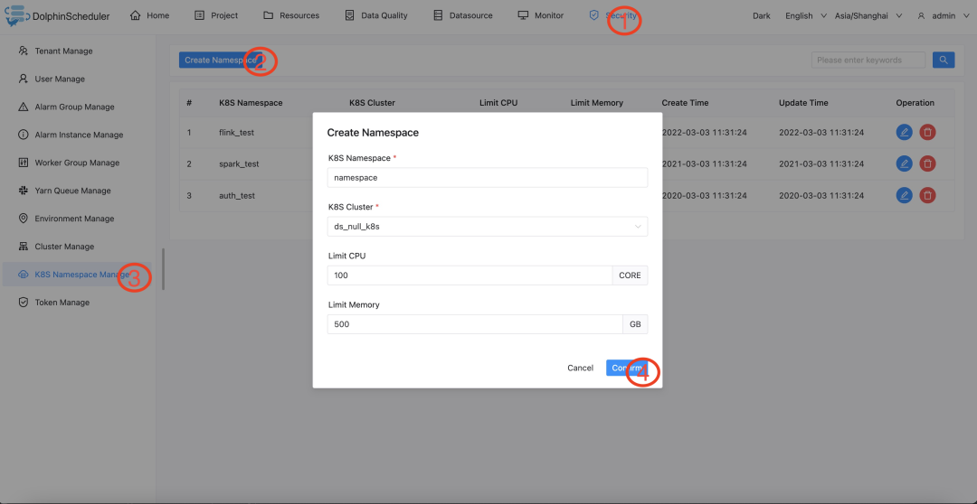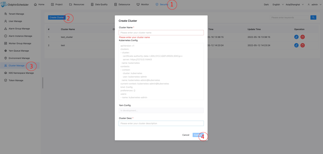 集群管理:创建和授权后,k8s 命名空间和工作流会增加关联集群的功能,每一个集群会有独立的工作流和任务实例独立运行。