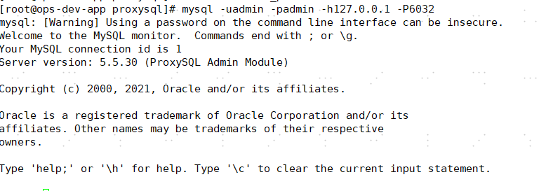 启动了6032和6033两个端口,默认管理端口是6032,客户端服务端口是6033,默认的用户名密码都是 admin,通过mysql的客户端可以登录。