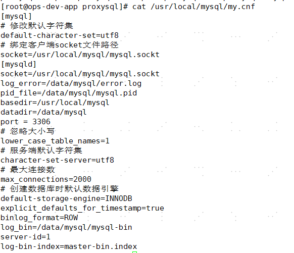 6、修改mysql配置文件my.cnf ================》注意本次没有使用/etc/my.cnf,把my.cnf放到了自定义目录下。