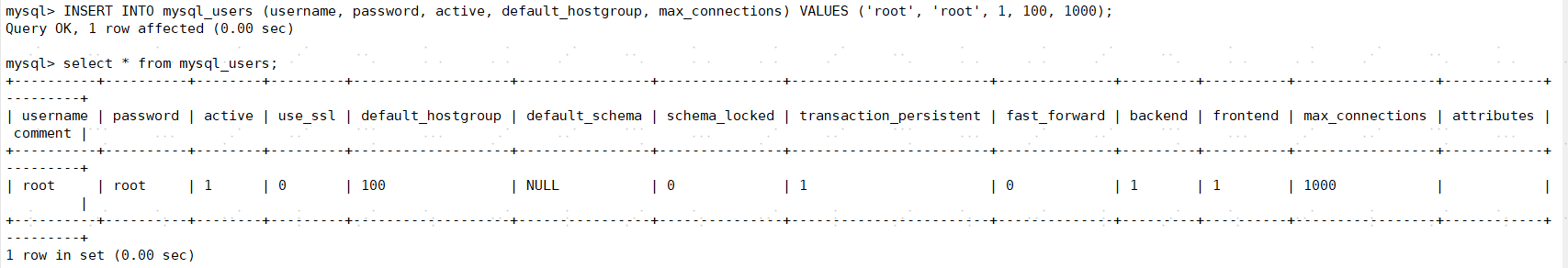这一步是把后端的数据库的角色加入到proxysql里面。weight字段是权重,可以不写。