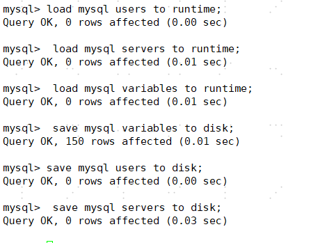 以上添加的用户,server都需要加载到proxysql的内存实时生效,并保存到磁盘上。