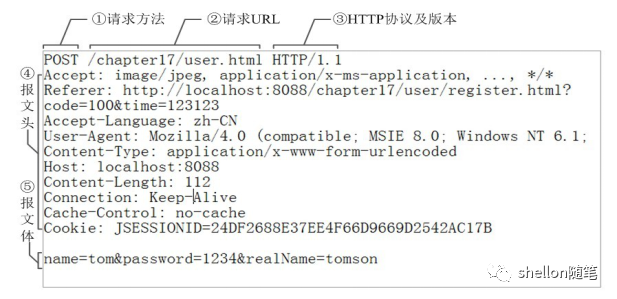 比如要使用POST方法提交一个表单,其中有user字段中数据为“admin”, password字段为123456,那么这里的请求数据就是 user=admin&password=123456,使用&来连接各个字段。