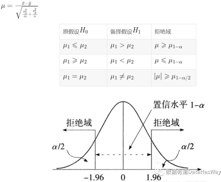互联网每日可获取大量的用户行为数据,根据统计量的检验方法,当样本量较大的时候,我们采用U(正态分布)检验法。