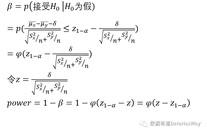假根据第二类错误的定义当H0为假时,接受H0的概率,下面来详细推导统计功效的计算逻辑。