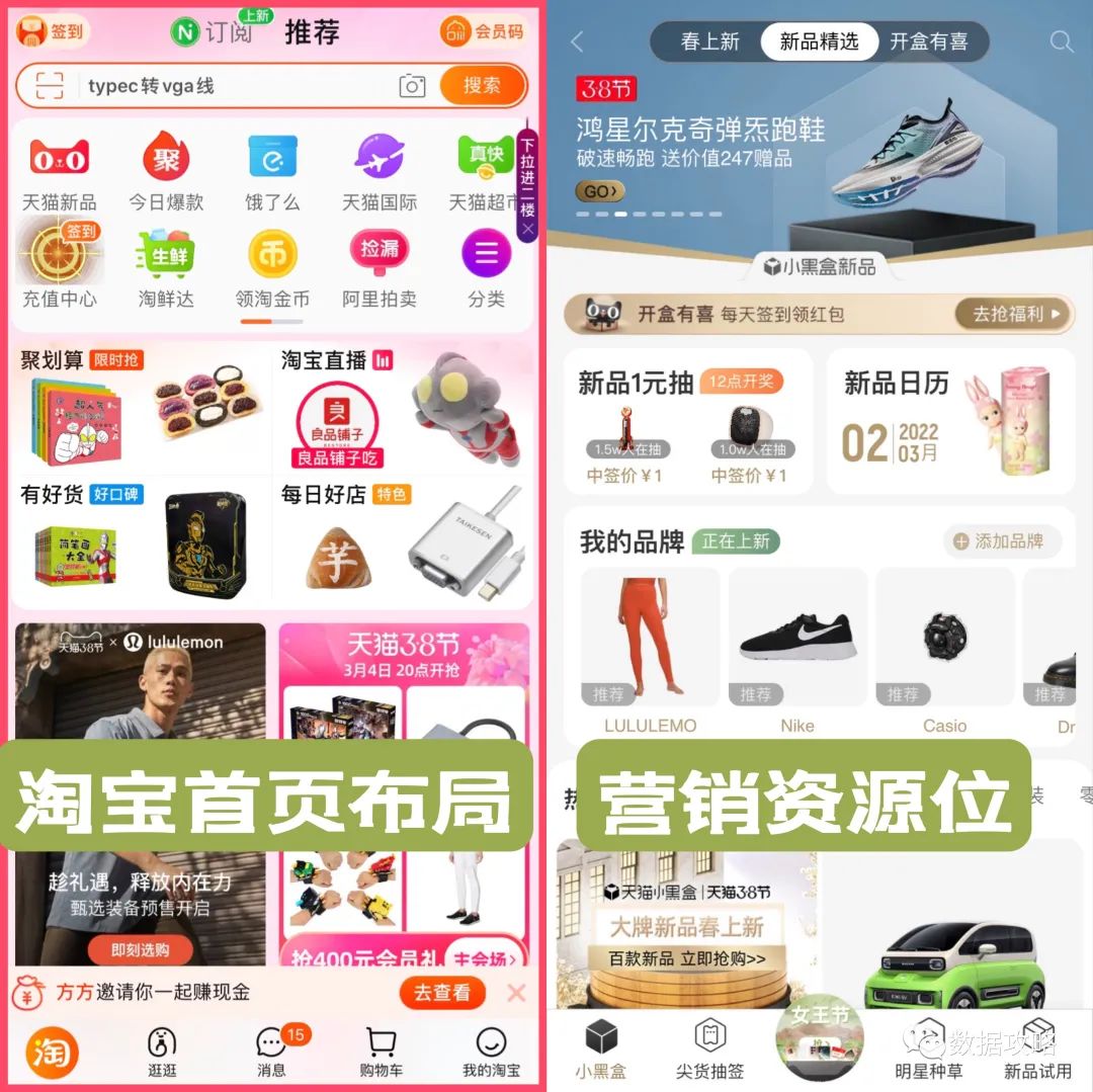 商品推荐模块:首页底部的商品推荐 营销资源位:天猫超市、天猫新品、聚划算、淘宝直播、有好货、每日好店等 游戏模块:芭芭农场、火爆连连消等 (注:为什么游戏模块也会被划分为场的一部分呢,主要是因为这些游戏总会在各个地方铺一些平台商品,吸引用户进行购买和转化。)