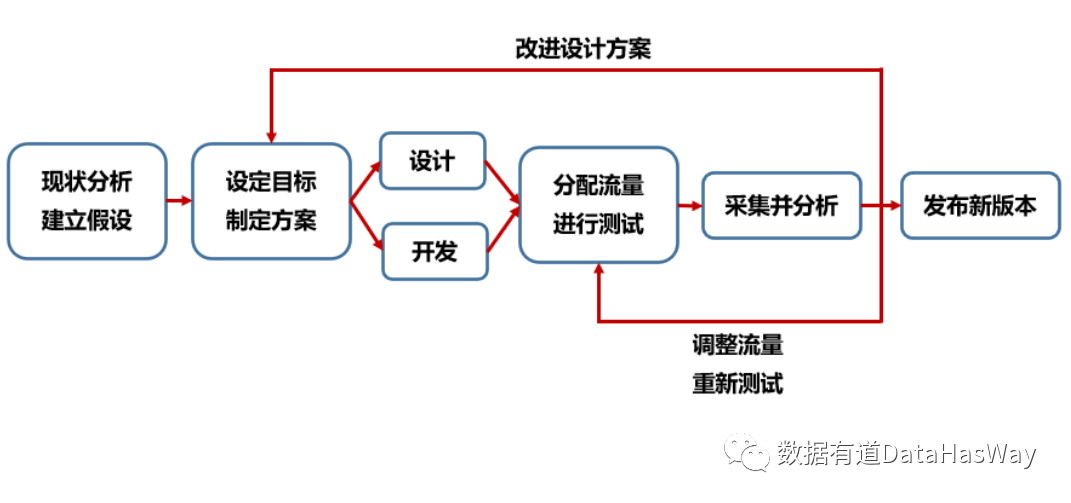现状分析并建立假设:分析业务数据,确定当前最关键的改进点,作出优化改进的假设,提出优化建议;比如说我们发现用户的转化率不高,我们假设是因为推广的着陆页面带来的转化率太低,下面就要想办法来进行改进了