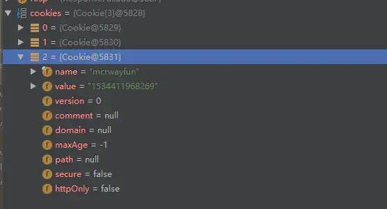 值得注意的是,从客户端读取Cookie时,包括maxAge在内的其他属性都是不可读的,也不会被提交。浏览器提交Cookie时只会提交name和value属性,maxAge属性只被浏览器用来判断Cookie是否过期,而不能用服务端来判断。