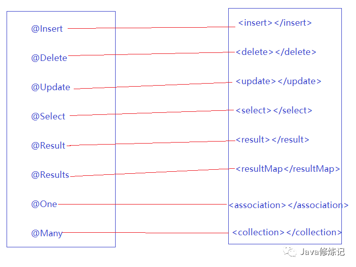 @Results({ // 代替的就是resultMap标签 id标签 result标签
