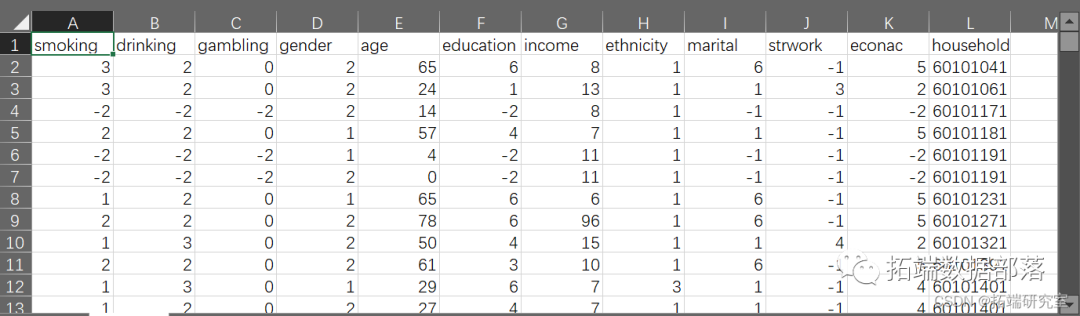 从数据集来看,吸烟、喝酒和赌博的反应显然只有是或不是,这是二进制的。而且,所有的解释因素都可以被归类或被视为连续的。因此,使用Logistic回归作为基本模型是可靠的。