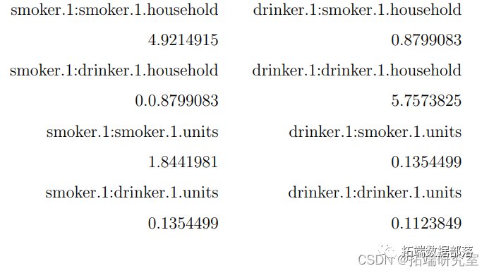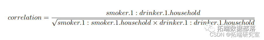 在这里,我们可以计算出吸烟者和饮酒者之间的相关关系,其方差为