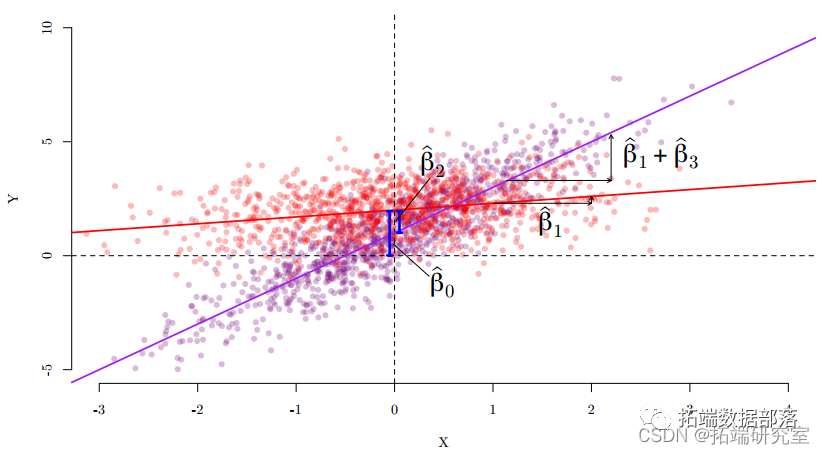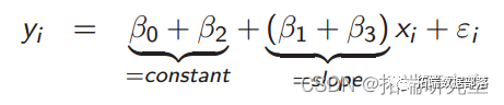 y__i = β_0 + _β_1_x__i + β_2_d__i + β_3_d__i · x__i + ε__i