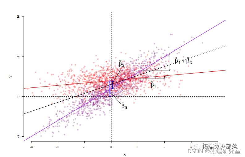 我们可以使用与虚拟变量的交互作用来允许不同子组中 X 的不同边际效应。