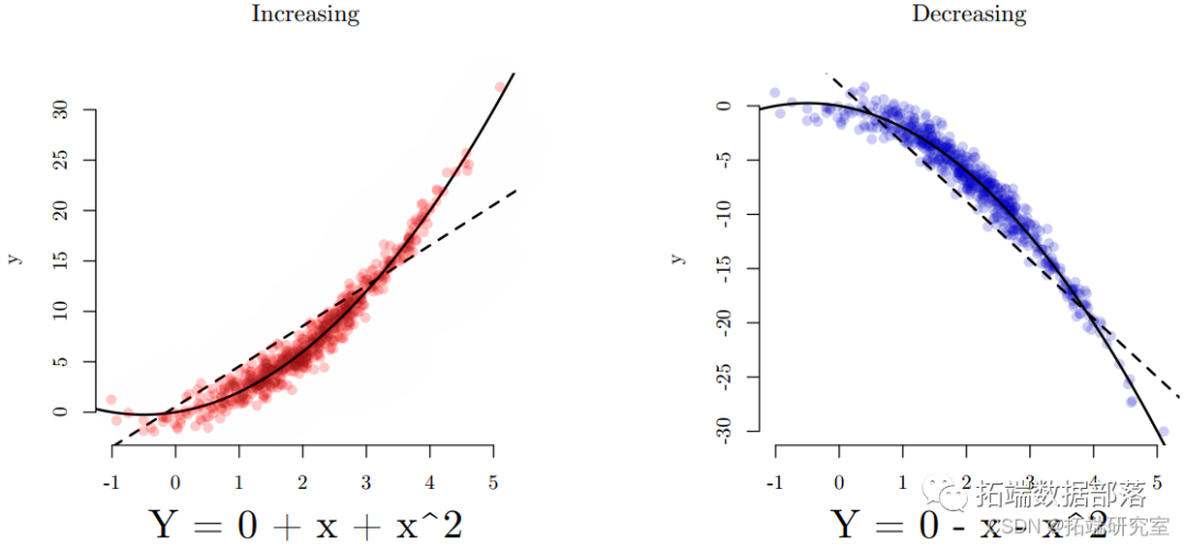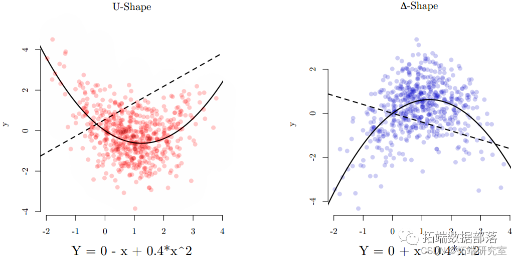 如果_β_ x_为正且_β _x_ 2为负,则得到倒 U 形•如果_β_ x_为负且_β _x_ 2为正,则得到 u 形