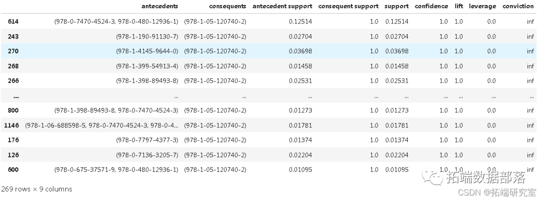 本文分别用Apriori算法和Carma算法对数据进行处理挖掘,具体结果如下所示。
