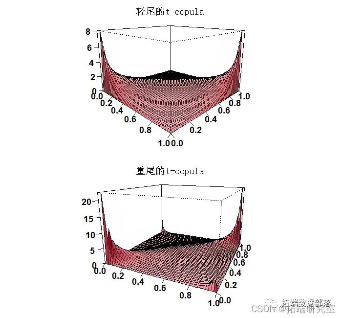 上下尾不一定相同。这只是 t-copula 是对称函数的一个特征。在应用中,应该使用更真实的非对称 copula。