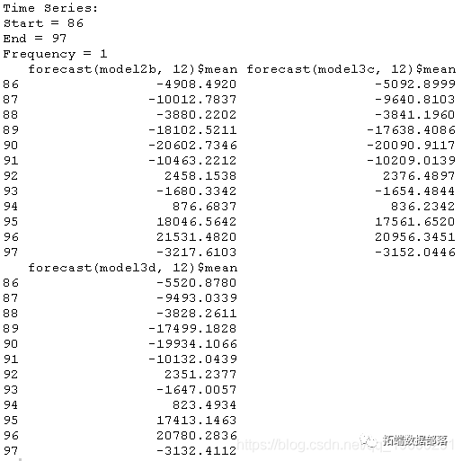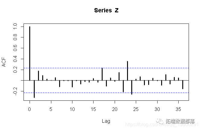 数字不同,但差异不大(请注意置信区间的大小)。这可以解释为什么在R中,当我们在自回归过程时 ,得到一个模型要估计的参数
