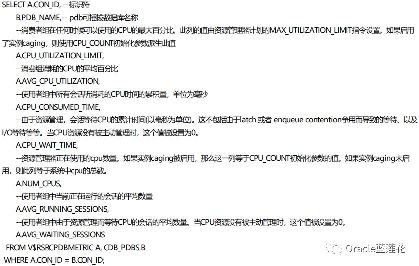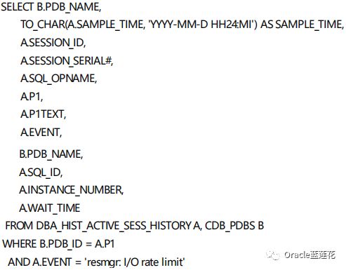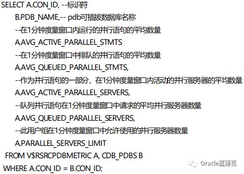 💙 DBA_HIST_RSRC_PDB_METRIC按PDB显示关于过去一小时的历史资源管理器指标的信息,刚才在定位resmgr: I/Orate limit等待事件期间对这个数据字典使用过。