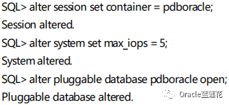 下面的示例在CDB级别设置MAX_IOPS和MAX_MBPS参数,这是所有PDBs的默认值。