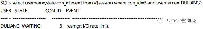 ✨可以看到那个session正在等待resmgr: I/Orate limit,这就说明了对PDB的IO限制成功生效了。