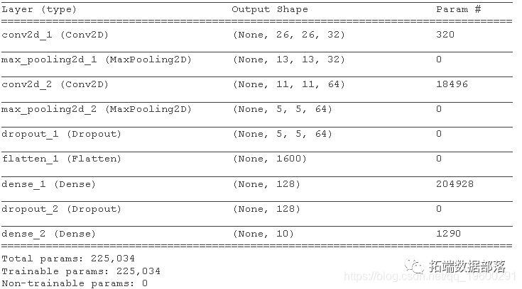 现在我们定义一个CNN模型,其中有两个带有最大池的二维卷积层,第2层带有附加滤波以防止过拟合。然后将输出扁平化,并使用两个密集层连接到图像的类别。