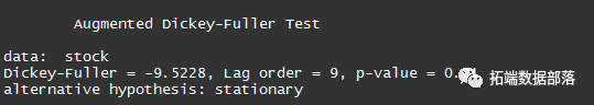 接下来,我们对收益序列数据调用ADF测试以检查平稳性。来自ADF测试的p值为0.01告诉我们该序列是平稳的。如果序列是非平稳的,我们首先会对回归序列进行差分,使其序列平稳。