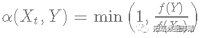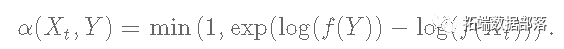 ,中生成的,根据决策标准被接受,所以链条在时间t+1时移动到状态Y,即Xt+1=Y或被拒绝,所以链条在时间t+1时保持在状态Xt,即Xt+1=Xt。