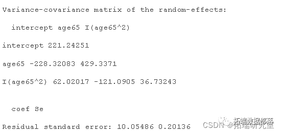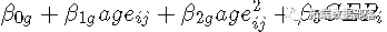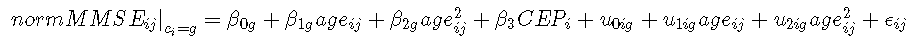 lme(norm ~ age65+I(age65^2)+CEP rand =~ age65+I(age65^2) subject = 'ID'