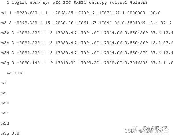 一组模型(通常具有不同数量的潜在类)的估计过程可以用 来概括 summary