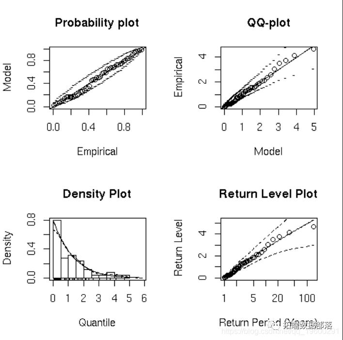 (这是极值模型中使用的另一个参数化)的正态性,或者在任何四分位数