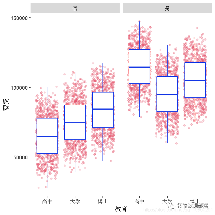 你学得越多,你的收入就越多。高中、大学和博士的年薪增长分别为0、10k和20k。