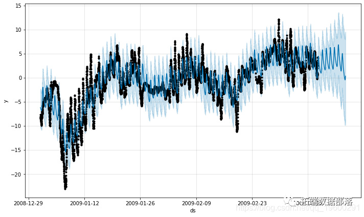 plot(m, forecast)在我们的示例中,我们的预测如下所示:
