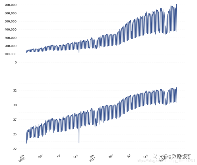 # dim(df)Prophet输入DataFrame中有两列:分别包含日期和数值。