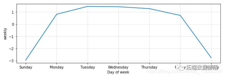 每周和每年都有明显的季节性。如果时间序列长于两个周期以上,则Prophet将自动适应每周和每年的季节性。
