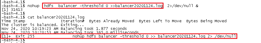 而且执行数据均衡时,显示“Thecluster is balanced”,程序退出。
