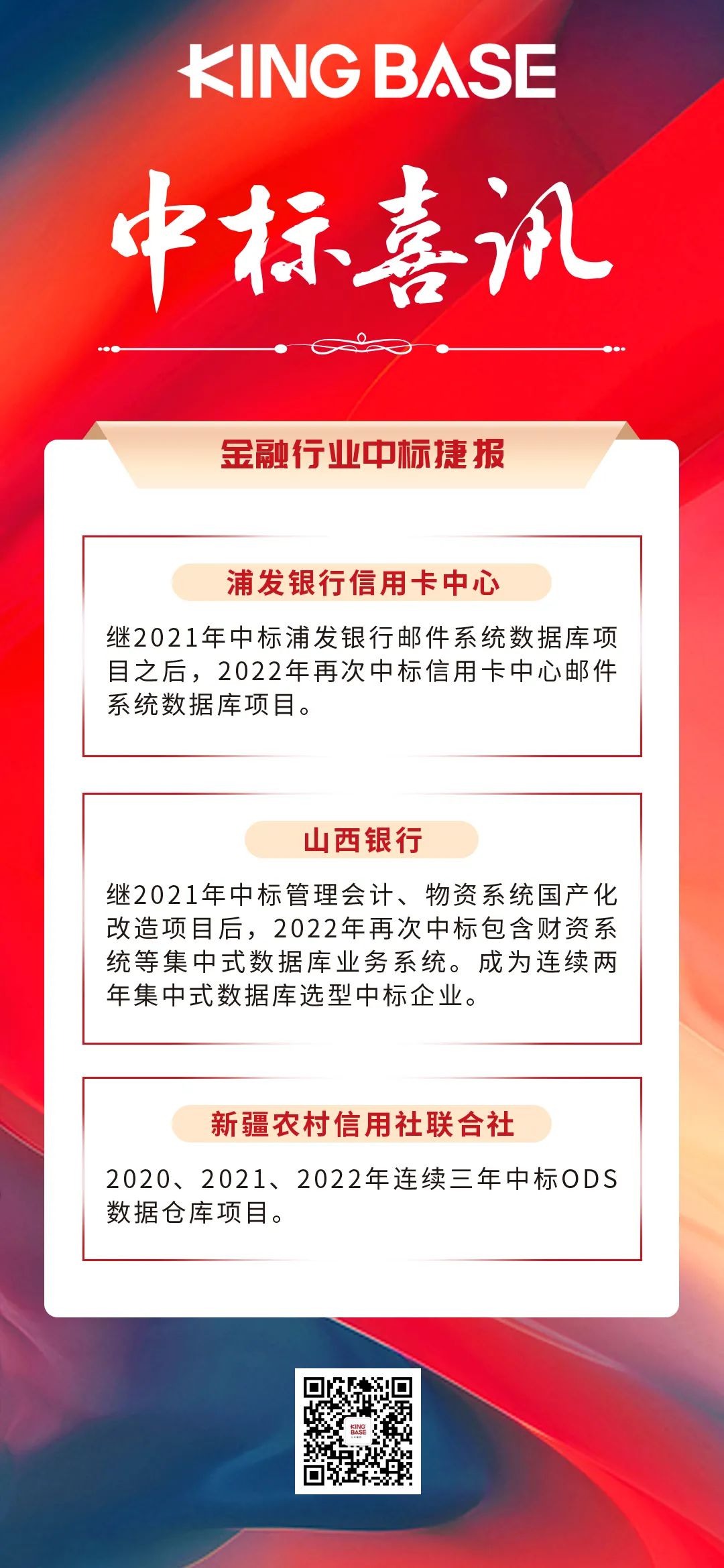 中标捷报 | 人大金仓再次中标浦发银行、山西银行、新疆农信关键数字化项目