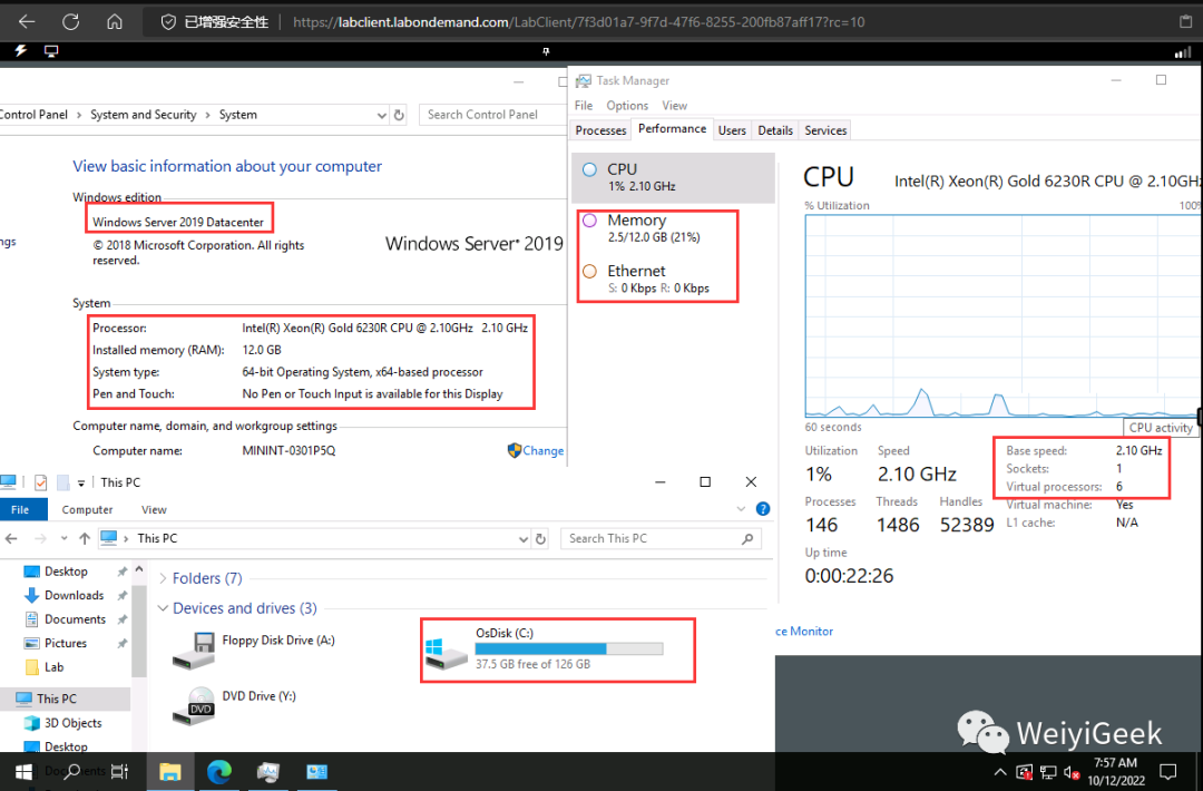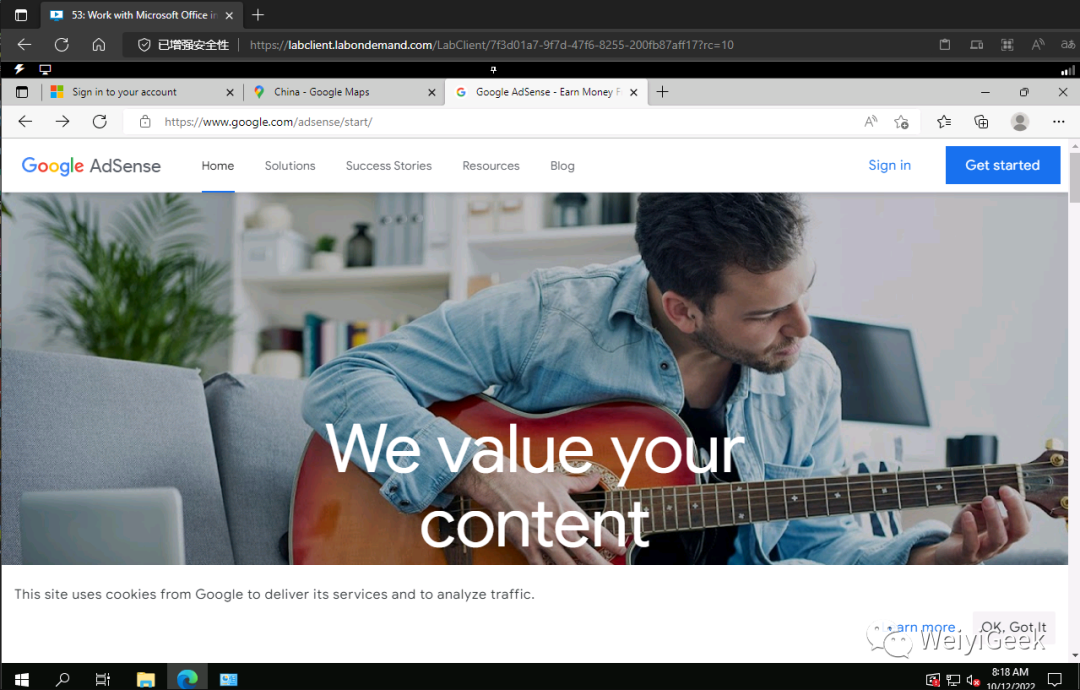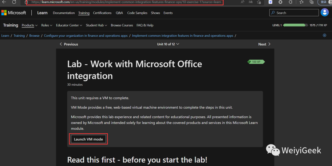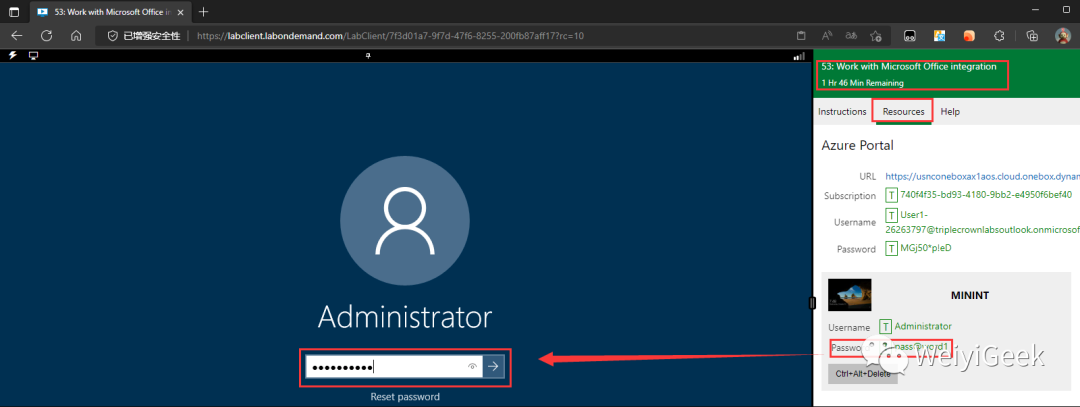 温馨提示: 此 VM 模式提供了一个免费的、基于 Web 的虚拟机环境,微软出于教育目的提供此实验室体验和相关内容,所以大家还是不要滥用以及干非法的事。