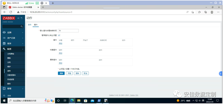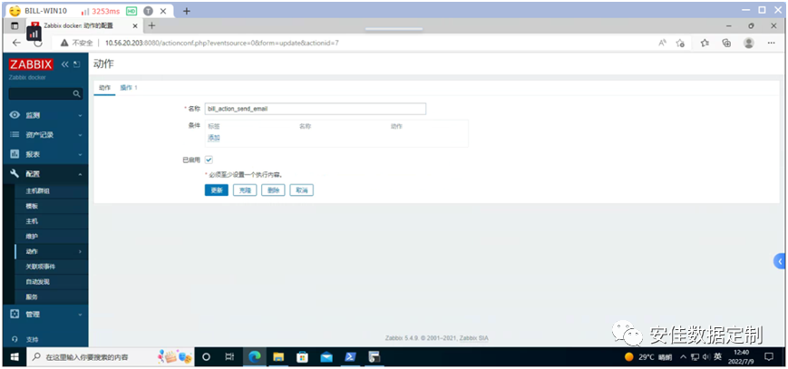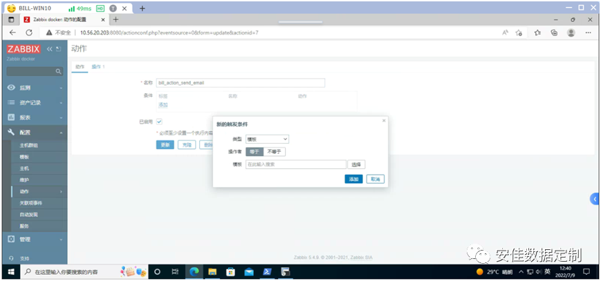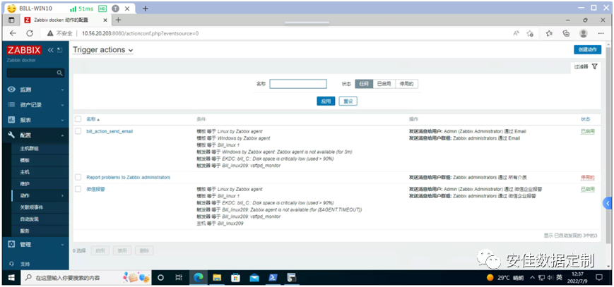 输入用户名和密码,然后在主界面的左侧点击《配置》,然后点击《动作-à触发器动作》;