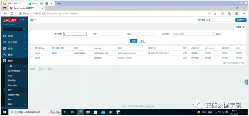 输入zabbix主页地址,http://10.56.20.203:8080/zabbix.php?action=dashboard.view