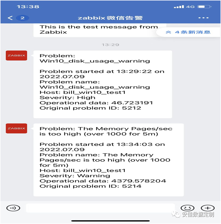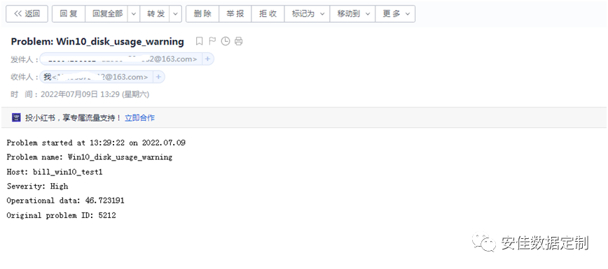 拷贝的过程中,由于空间剩余率低于85%,马上就触发了报警,并发送了邮件和企业微信,如下图: