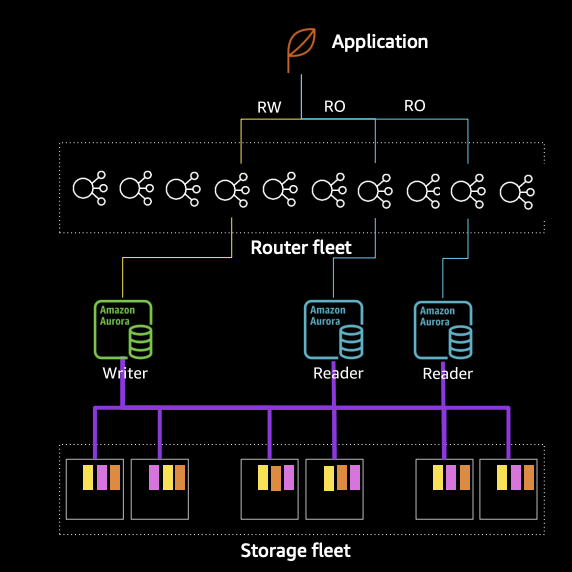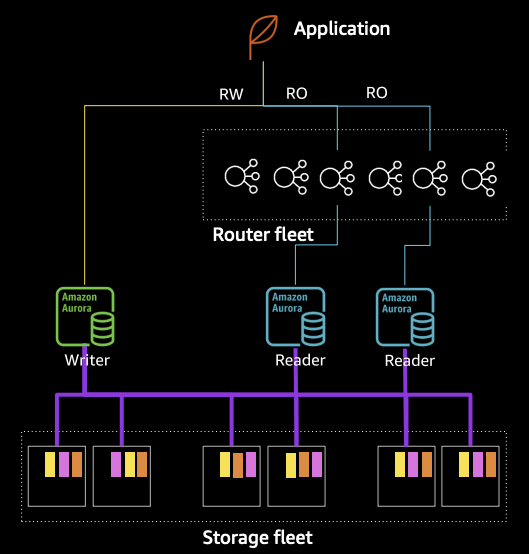 RDS Proxy也可以说为Router Layer。实现上非常轻量。Router Layer可以理解为是一个Proxy但具备连接池和流控的作用。支持MySQL,PostgresSQL协议。 Proxy只是简单的处理连接请求及把请求路由到正确的Query进程之外还有两个目的: 1. 从原始的数据库中剥离出来,形成连接成的Serverless架构更易伸缩 。 2. 会话保持后面的存储节点或是Query层重启,也可以保持客户端的连接不断开。路由层还可以跟踪数据库的连接分析数据库的使用及性能情况以便实现自动扩容,这种对于Serverless架构把接入层独立出来非常的重要。在一些版本中Aurora还支持通过HTTP Data API请求SQL,该设计就是基于router层来得的益处。