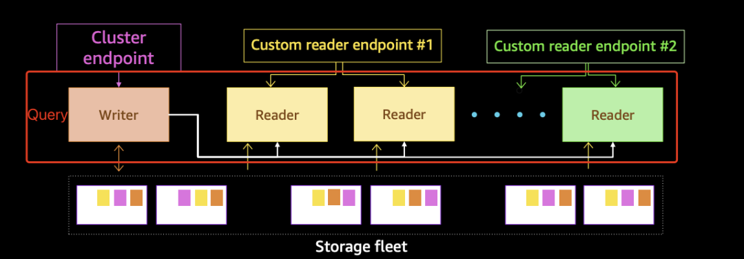 可以称query layer为数据库层,这个是主要的事务处理及计算实现的组件。通过Router层和Query层相连,同时接触Router层传递的SQL并执行,读取写入存储层的的数据和索引。Query layer是直接借签使用开源的PostgreSQL和MySQL的代码,这部分代码基本没有变化,所以在使用Aurora时也要注意一下和那个版本的特性匹配(目前看MySQL是5.7的)在经典的software-as-a-Service的架构中一般是一个API支持多版本请求,但Aurora中只支持固定的版本对所有用户服务(避免多版本,让开发更轻松)。在自动扩展和自动故障转移方面更多的和自已托管的开源数据库方案一样。在Aurora集群中同时只有一个写实例,可以支持多个read-only实例(目前支持15个)。和使用MySQL的Master/Slave一样的。Query进程是跑在Vm中,所以选择合理的配置,可以让Query层获得更好的性能。这点更加体现了Serverless架构设计中,把计算层重的地方单独剥离出来,独立部署的好处了。
