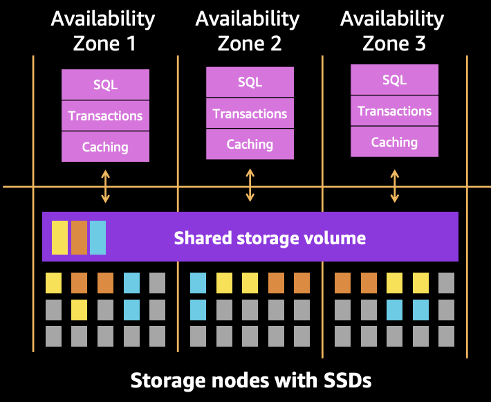 Aurora中Storage层使用云上高速S3块存储构建。存储层使用Log-Structured engine原生分布式设计。 同个Region中6副本,至少保证写4份才算成功。