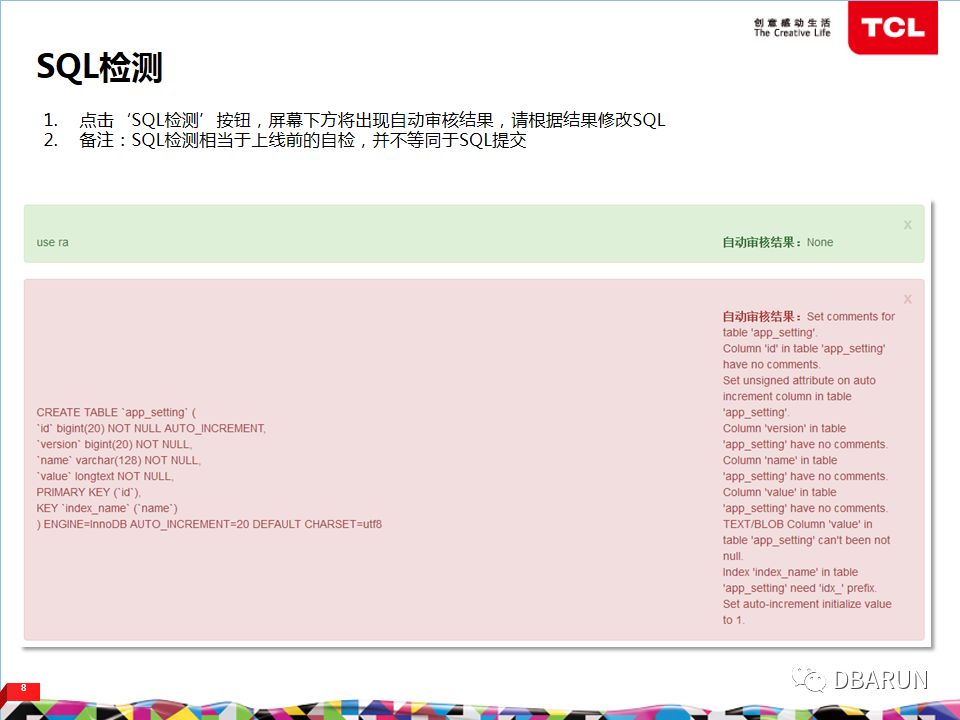 一定要找到合适的审核点,让大家都来遵守,对于SQL审核来说,就是要把DB操作权限掌握在DBA手里,不能对外开放,这点一定要掐死了!!!是的,掐死了,要狠!!!哈哈……