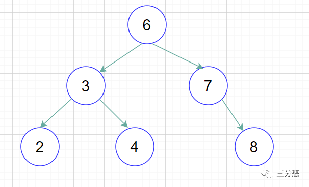 同样是2,3,4,6,7,8这六个数字,如果我们插入的数据刚好是有序的,那它就变成这样👇