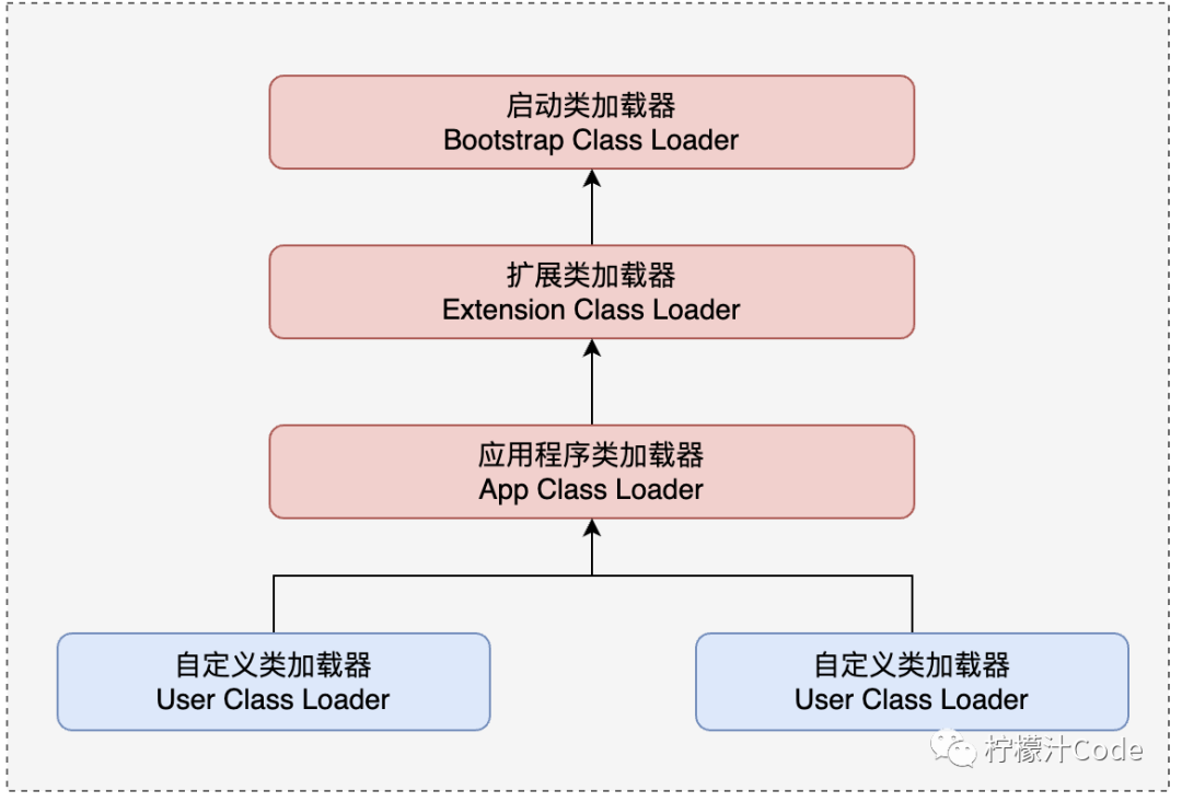 上面介绍了三个系统提供的类加载器,那么他们之间以及和自定义类加载器是如何协作的呢?