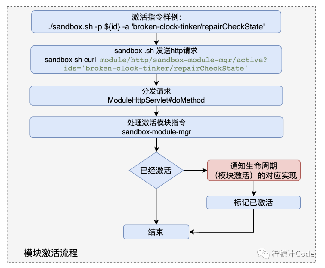 激活的本质就是将 coreModule 实例的 isActivated 标记设置为 true,这样模块才可以接收到代码增强触发的事件
