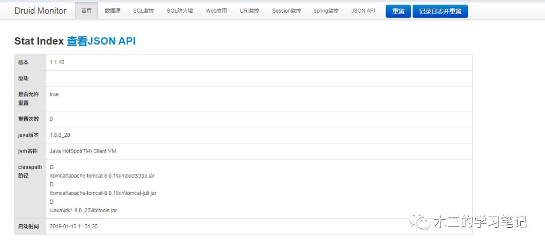 监控页面:http://127.0.0.1:8080/项目名称/druid/index.html