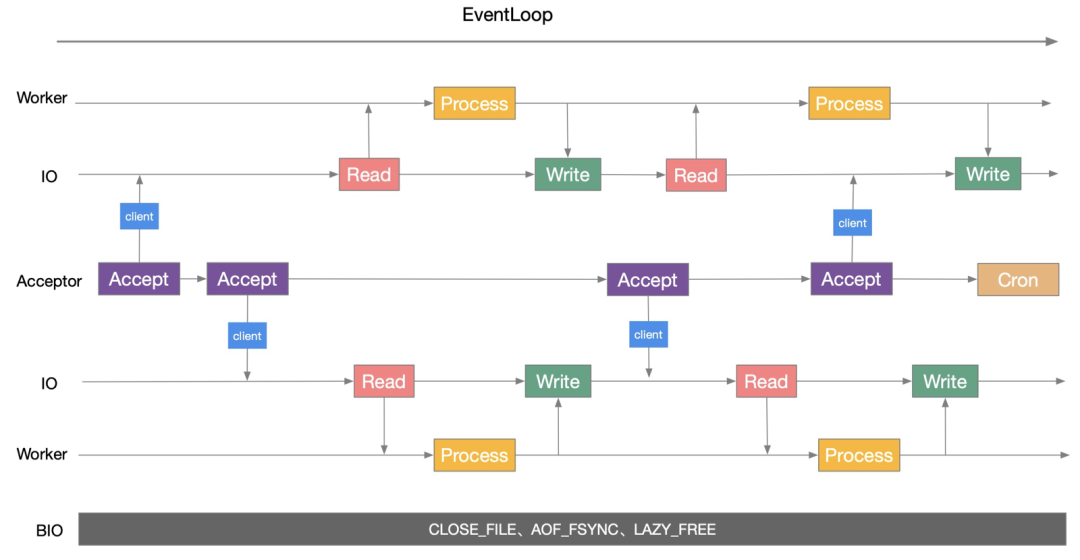 Tair数据库的引擎是一个多线程的实现。相比开源的Redis版本,从本质上解决了单处理线程带来的多种问题,例如压力过大时导致的同步断线、出力慢时统计数据无法获得、pubsub在订阅客户端过多时不堪重负等问题。